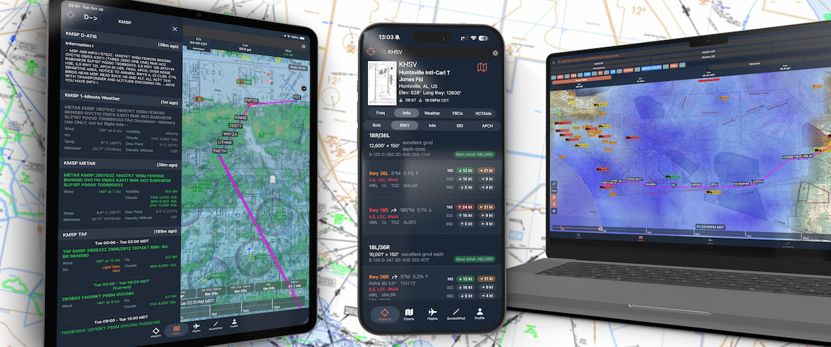 All-in-one flight planning with real-time weather, fuel prices, and live airport data - no more juggling apps or phone calls.